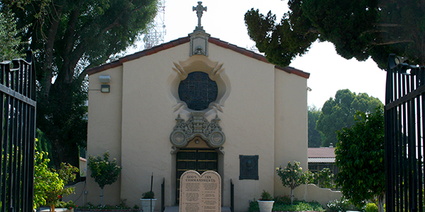 This little church between Ontario and Rancho Cucamonga is recognized by its Californian mission style, elegant iron bell tower