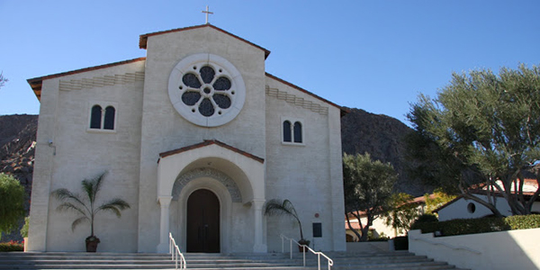 The present church building, nestled in the hills of the La Quinta cove, was dedicated by Bishop Philip Straling on November 25, 1984. Patterned after the Church of St. Francis in Assisi, Italy, the concept and design were envisioned by acclaimed film director Franco Zeffirelli and Fr. Bluett. The interior artwork and fixtures were done by local artists.