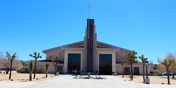 In a small building at the corner of Onaga and Church Streets, Fr. Norman Smith celebrated the first Mass at St. Mary of the Valley, Yucca Valley, on Palm Sunday 1953. Fr. Edward Creighton assumed duties as pastor the following November.
